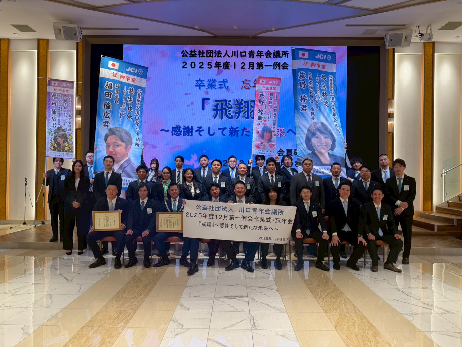 12月第一例会「卒業式・忘年会」にご参加・ご協力いただきました会員の皆様、ならびにご来場いただきました一般社団法人とだわらび青年会議所の皆様、先輩諸兄姉の皆様に、心より厚く感謝申し上げます。